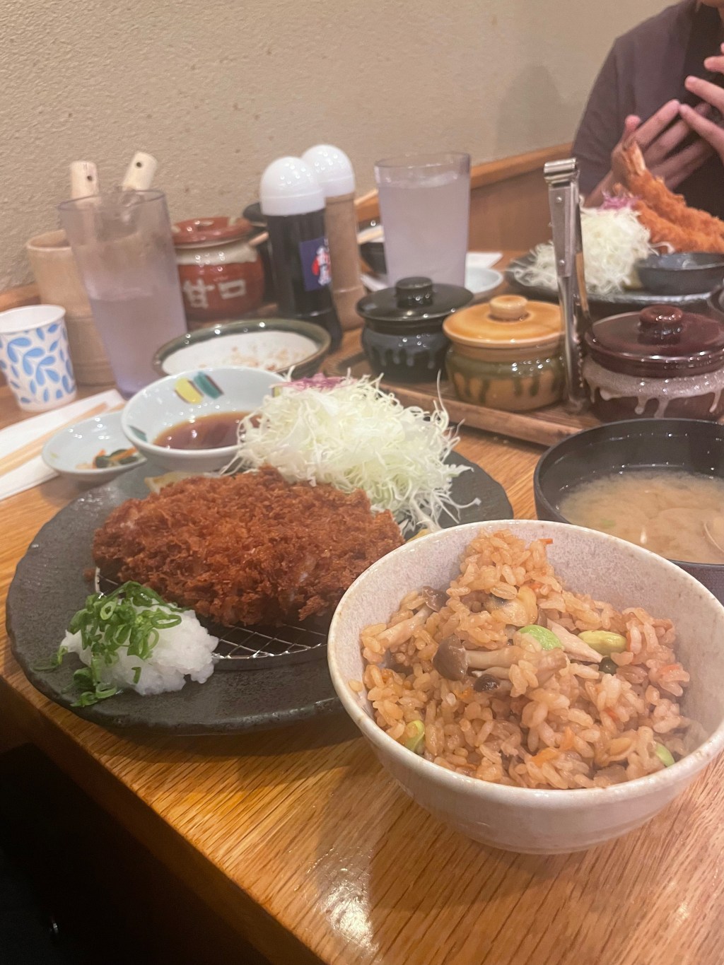 Tonkatsu Tamafuji had the best tonkatsu that I’ve ever eaten so far! The outside had this flaky and crunchy bite with a soft, tender, and melt in your mouth pork katsu. And, I love clams so eating the fried rice and the clam miso soup was everything I loved an more. I liked that we can make our own sauces too. The line was so long, so I definitely recommend making a reservation before you make your way here.
